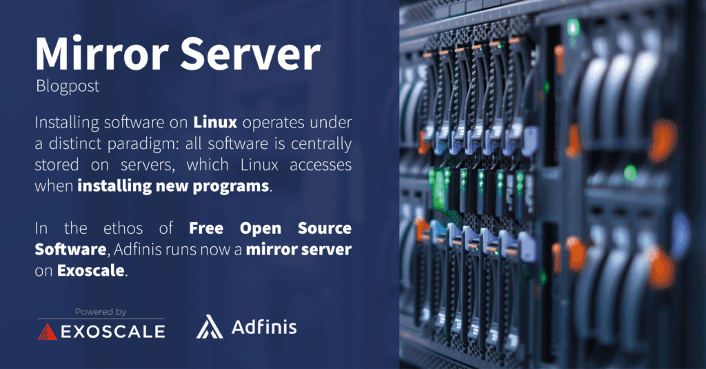 Exoscale und Adfinis sind sich zunächst einmal sehr ähnlich. Beide sind Schweizer Unternehmen und engagieren sich stark für Linux und verschiedene Open-Source-Softwareprojekte und Communities. Heute haben wir unsere Kräfte gebündelt, um einen schnellen und zuverlässigen Linux Mirror Server anzubieten. Unsere Zusammenarbeit stellt sicher, dass Repositories für die führenden Linux-Distributionen leicht zugänglich sind.