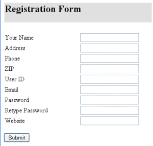 Most of the aspects which need to be taken into account for forms and their validation are already clearly demonstrated in a simple registration form: