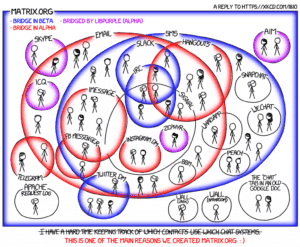 Matrix makes it easy to access the various existing protocols through a single protocol. Another nice-to-have is the ability to choose your own client. Various implementations are still in the alpha to beta phases. This severely limits the selection of individual components.