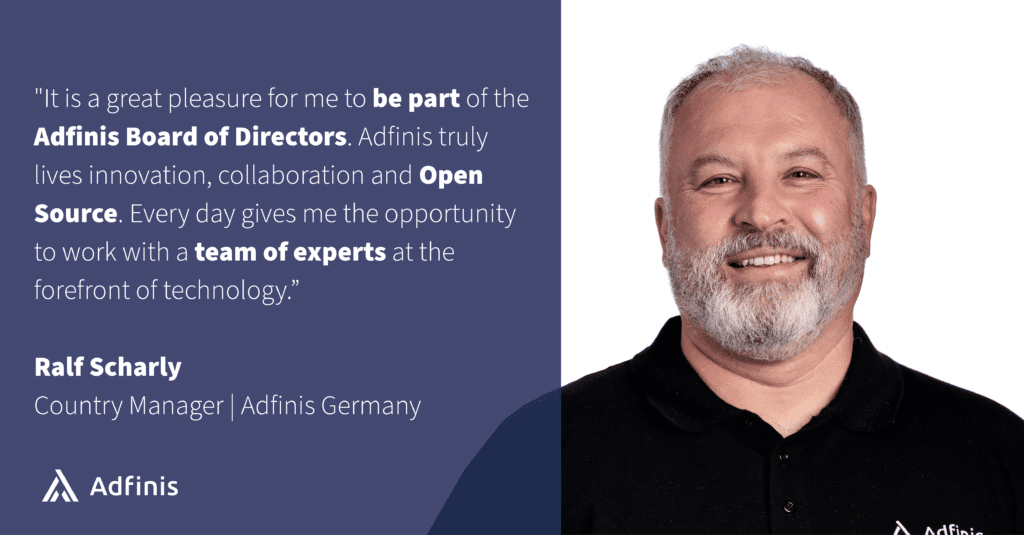 As a member of the Adfinis Board of Directors, Ralf Scharly will be actively involved in the strategic direction of the company and contribute to the development of innovative solutions to meet customer needs while creating sustainable value. The clear focus on open technologies, the development of sustainable, robust and transparent solutions as well as international growth on the way to becoming a globally positioned open source system integrator will continue to be in the center of attention.